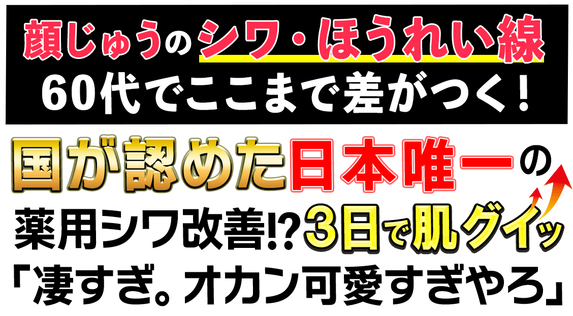 洗って塗るだけでシワが?と疑ってましたが、周りがみんな気づくほど変わりました!シワだけでなく美白にも効きすぎて、手持ちのファンデ全滅です(笑)毛穴もかなり綺麗になったので、今はほぼ日焼け止めだけで過ごしてます^^